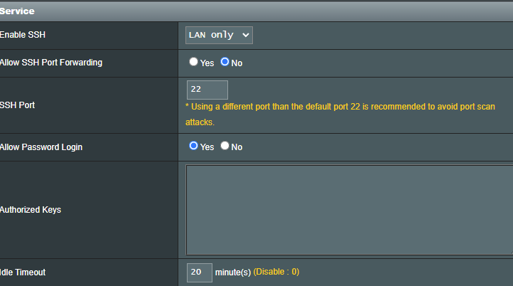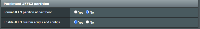 Next, we need to ensure that JFFS2 is configured on the router. Set Enable JFFS custom scripts and configs to Yes.