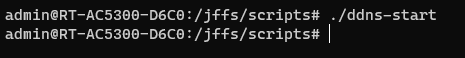 You can manually execute this script using ./jffs/scripts/ddns-start – If everything goes well, it should just return to the command prompt without error.